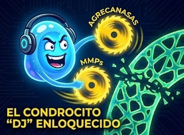 Pero en la artrosis, el DJ se vuelve loco. Recibe las señales equivocadas y cambia el Chill Out por Death Metal. El condrocito deja de fabricar ladrillos y empieza a fabricar motosierras biológicas.