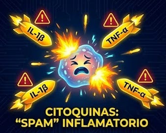 El condrocito no deja de recibir spam. Las citoquinas son como millones de notificaciones de haters en Twitter/X diciéndole: