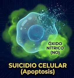 El NO es un gas que, en exceso, es tóxico para la célula. Lo que hace es bloquear la mitocondria (la batería de la célula). Sin energía para reparar el desastre y agobiado por el entorno tóxico, el condrocito toma una decisión drástica.