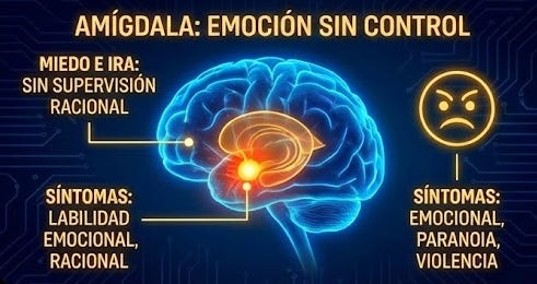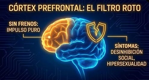 1. El filtro roto (desinhibición orbitofrontal) La zona orbitofrontal de tu cerebro es la que te dice: “No toques eso”, “No digas eso”, “No te acuestes con la mujer del cónsul en medio de la cena”. Esa zona de Calígula se borró del mapa. Su famosa “depravación” no era vicio; era la incapacidad mecánica de reprimir un impulso. Si lo pensaba, lo hacía. Sin filtro.