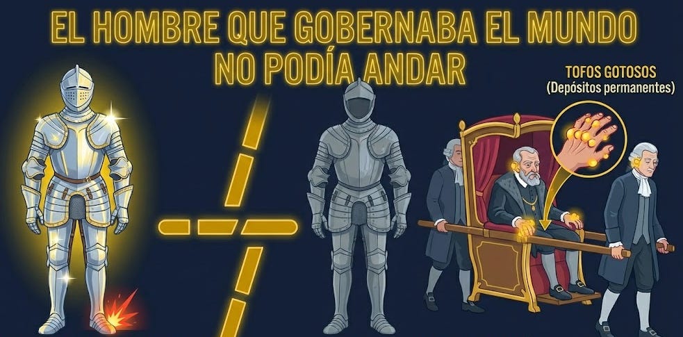 Eso significa que esa analítica que os hacéis cada año y en la que aparece el ácido úrico... merece más atención de la que probablemente le dais. Pero eso será otro capítulo, porque Carlos V todavía tiene más historia médica que contarnos.