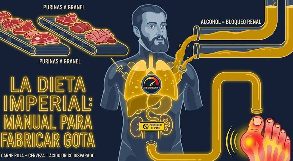 Y hay algo que me parece especialmente interesante, desmontas la idea romántica de enfermedad de reyes para mostrar que en realidad era enfermedad de exceso. Exceso de purinas, exceso de alcohol, exceso de privilegio metabólico mal gestionado. Cambian las épocas, pero el mecanismo inflamatorio es el mismo.