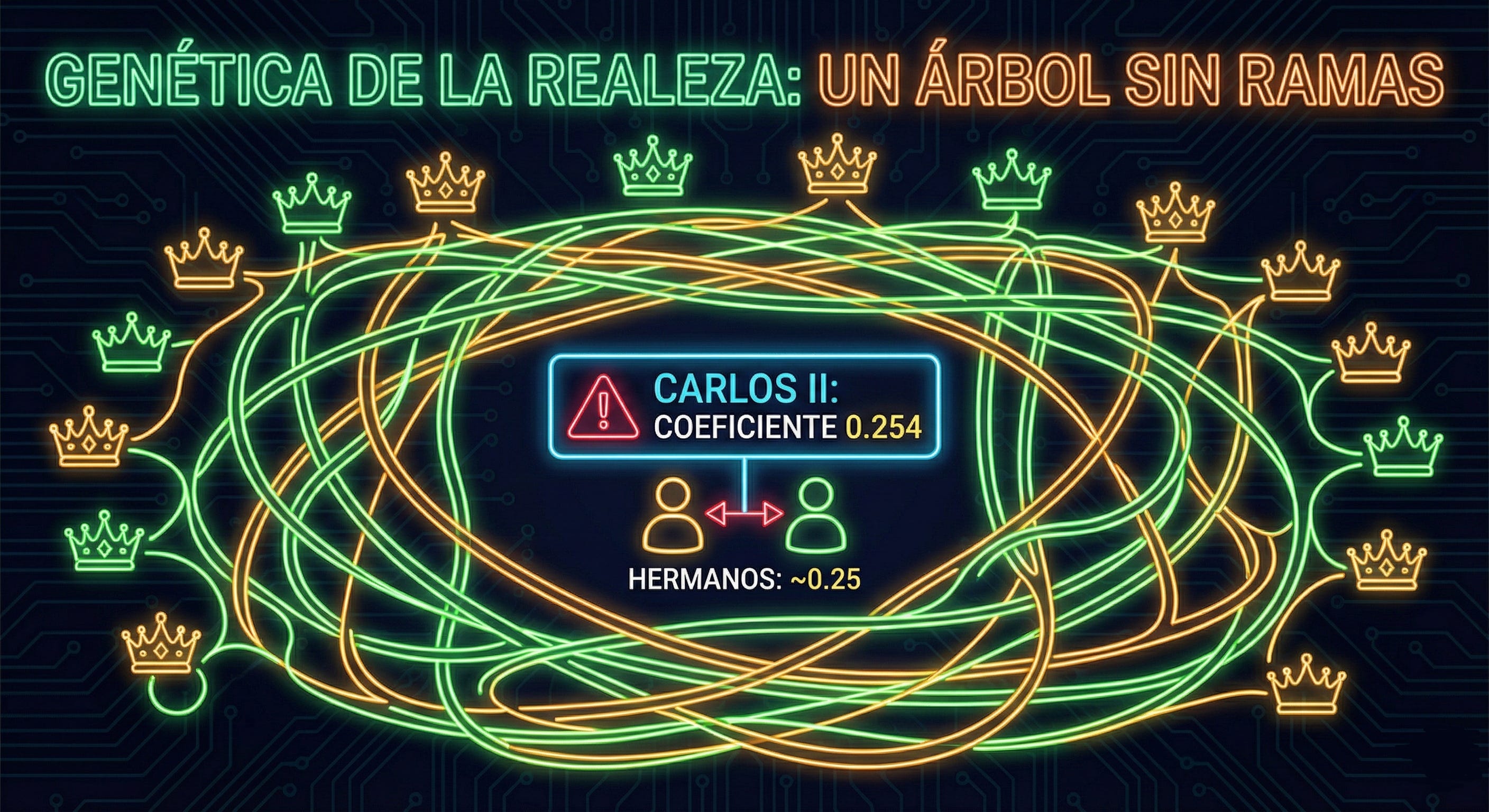 Coeficiente de consanguinidad Carlos II (F=0.254) y extinción dinástica Álvarez G, Ceballos FC, Quinteiro C. “The Role of Inbreeding in the Extinction of a European Royal Dynasty”. PLOS ONE, 2009 https://journals.plos.org/plosone/article?id=10.1371/journal.pone.0005174