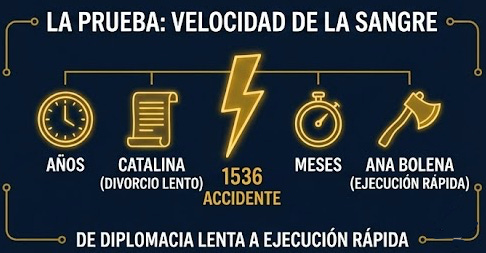 El accidente fue en enero de 1536. En mayo de 1536, apenas cuatro meses después, mandó ejecutar a Ana Bolena.