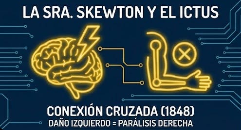 El del Ictus. Describe a la Sra. Skewton: colapso, parálisis del lado derecho y pérdida del habla. Entendió la conexión cruzada del cerebro (daño izquierdo es parálisis derecha) antes de que la neurología tuviera mapas corticales.